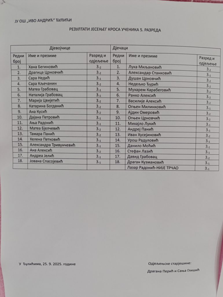 25/09/202525/09/2025 administratoradministrator 0 Comment Јесењи крос за ученике наше школе од 2. до 9. разреда одржан је 25.9.2025. год. Кретање чланка Previous Previous post: Next Next post: Оставите одговор Одустани од одговораВаша адреса е-поште неће бити објављена. Неопходна поља су означена *Коментар * Име * Е-пошта * Веб место Сачувај моје име, е-пошту и веб место у овом прегледачу веба за следећи пут када коментаришем.