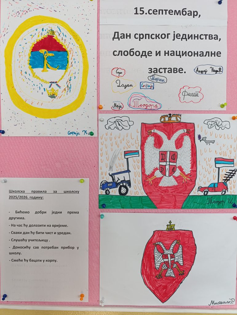 Обиљежавању овог значајног датума прикључили су се и ученици наше школе различитим активностима. Показујући да схватају значај слободе за коју је српски народ у прошлости положио многобројне жртве, којих се требамо увијек сјећати, ученици су на различите начине исказали своје ставове. Креативним радионицама, кроз слике, писане ријечи и разговоре о слободи, јединству и националној застави, ученици су послали јасну поруку – да су за мир и чување слободе као и њихови преци.