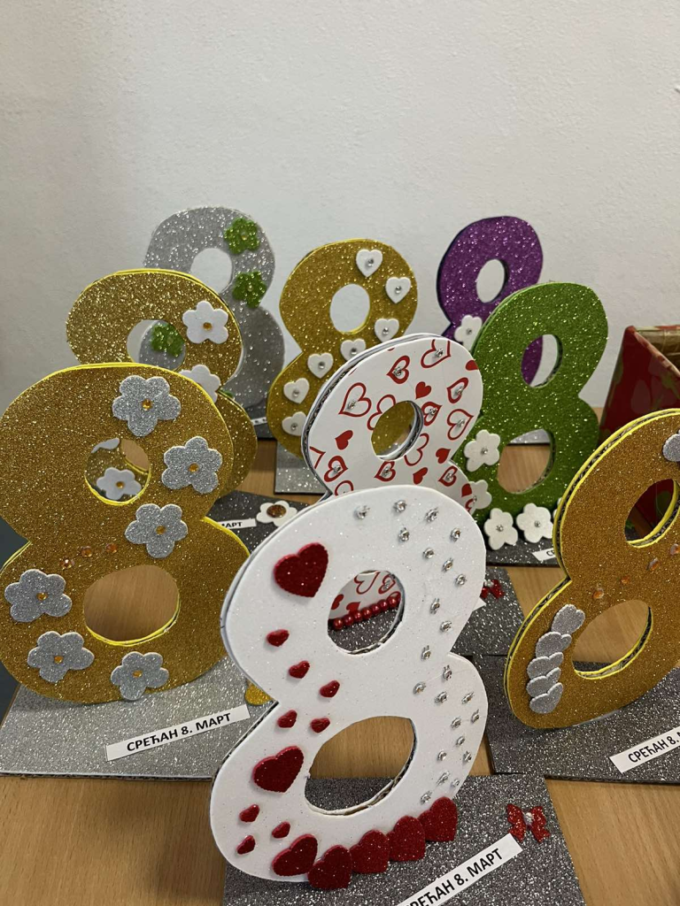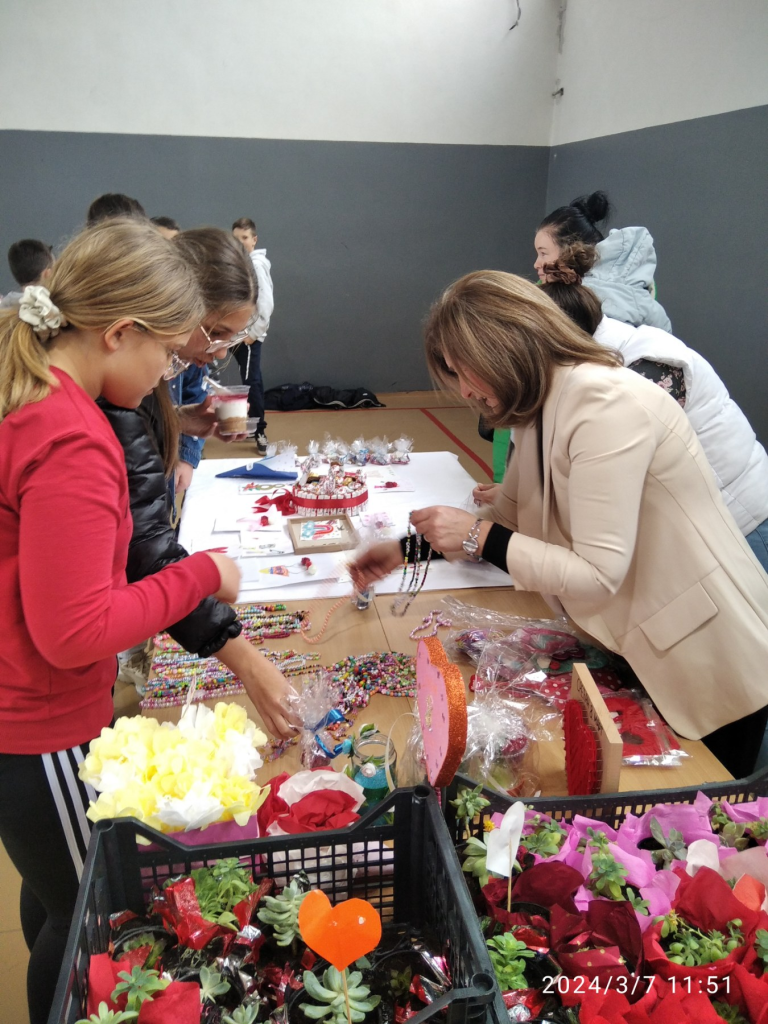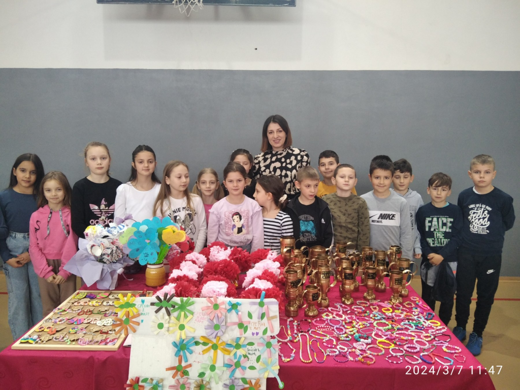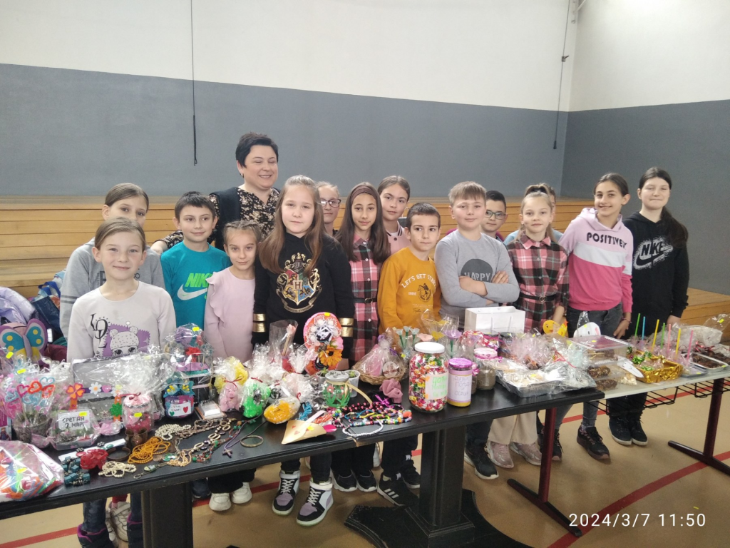 Осмомартовски базар ученика наше школе. Ученици су осмислили, а њихове вриједне руке припремиле мноштво занимљивих предмета, украса, колача… За сваког понешто, а највише за мајке, баке, тетке… да им буде срећан њихов дан – Дан жена.