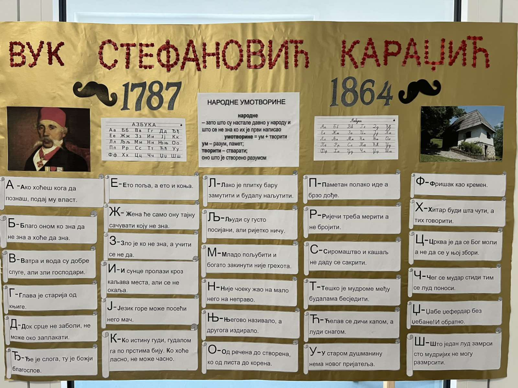 И ученици наше школе у ПО Горњи Теслић су 7.2.2024. год. обиљежили 160-годишњицу од када је у Бечу, 7. фебруара 1864. године престало да куца срце нашег највећег језичког реформатора Вука С. Караџића. А његова АЗБУКА остала је да куца у срцима ових најмлађих сљедбеника Вуковог пута, који тек уче прва слова и азбуку.